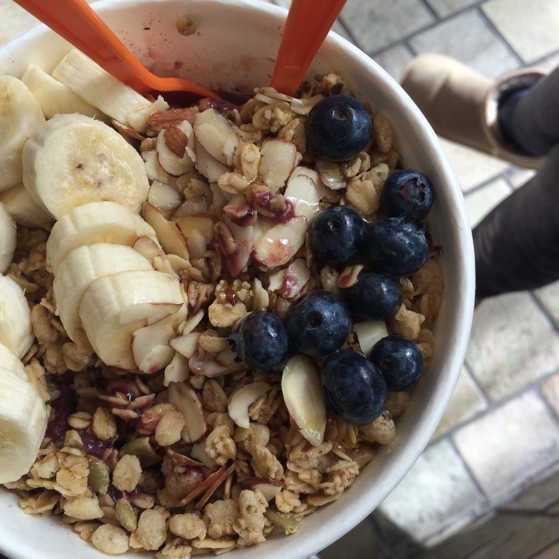 おすすめしてもらったアサイーボウルをテイクアウトして3年ぶりのゆんたくひんたくしました。