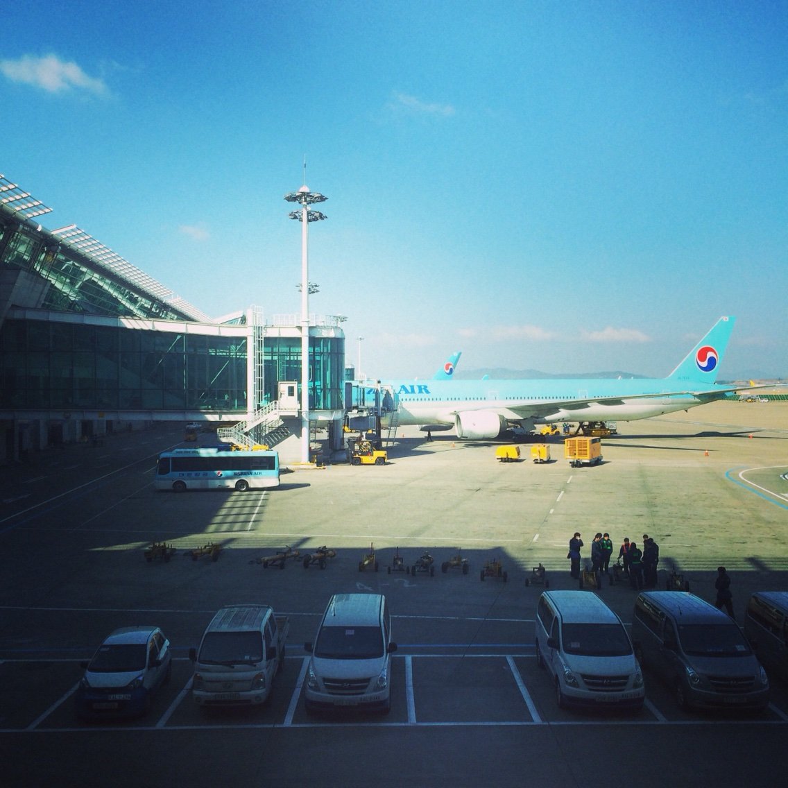 行きは韓国で7時間のトランジットだったから、空港のベンチで爆睡してしまいました。