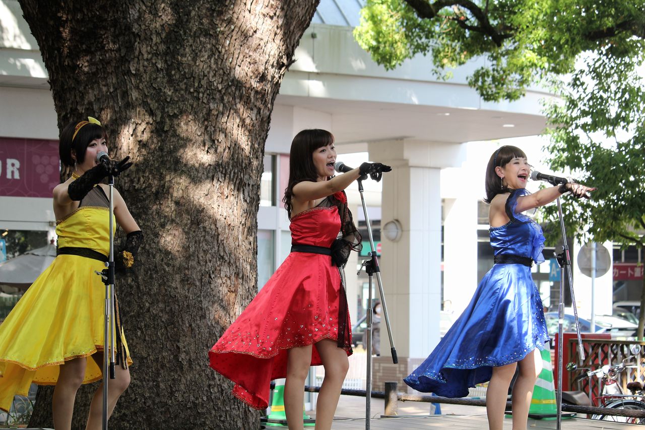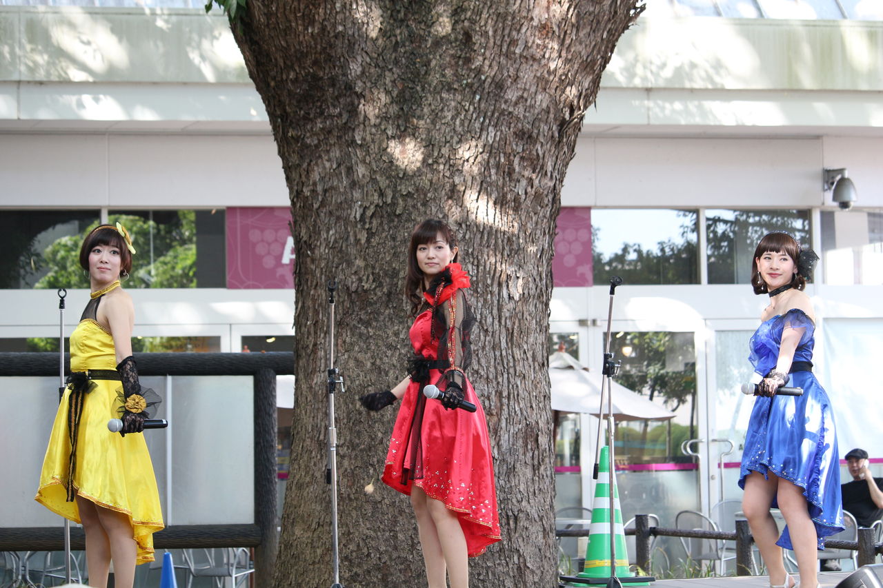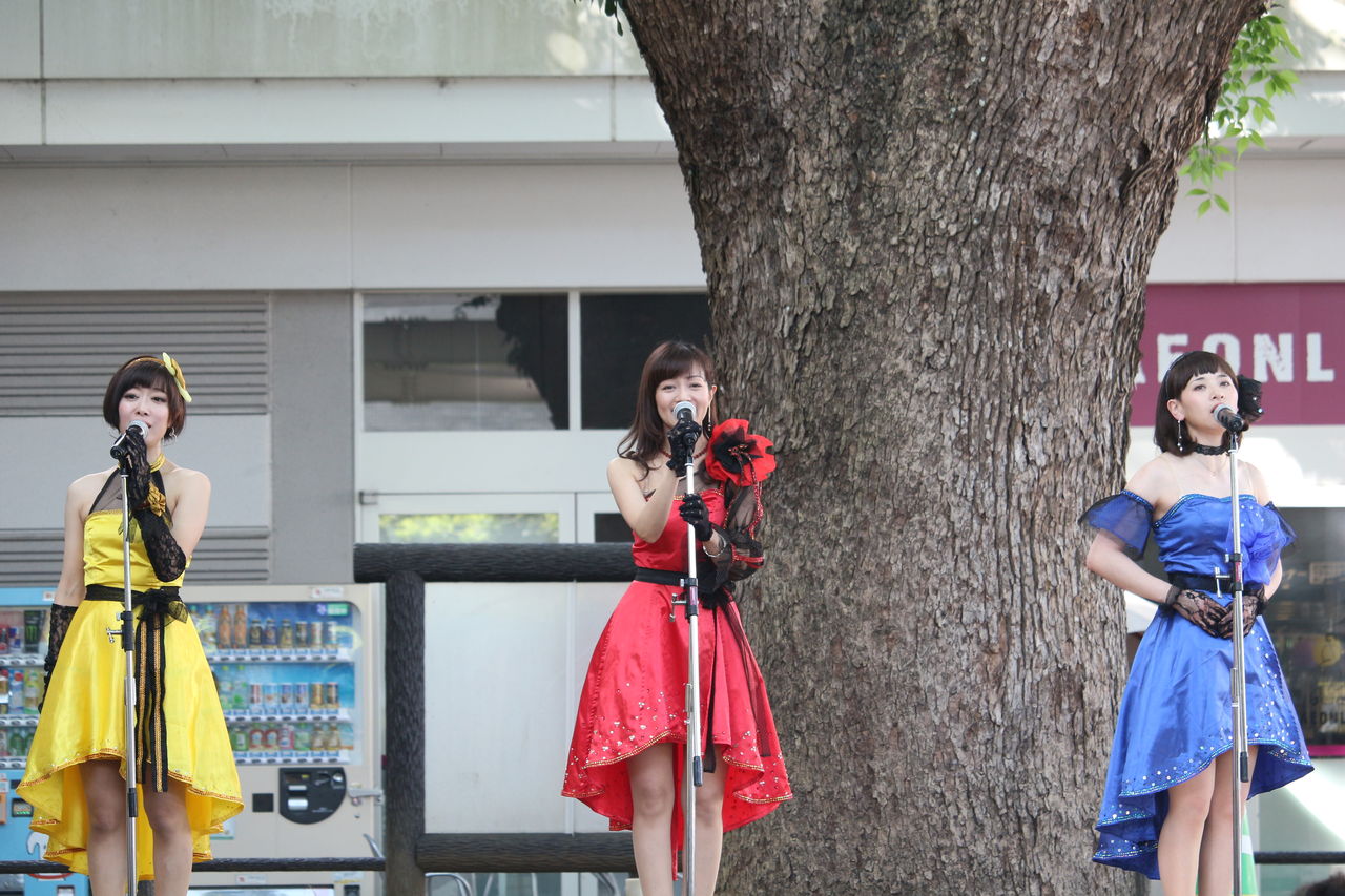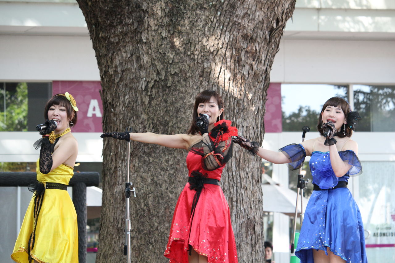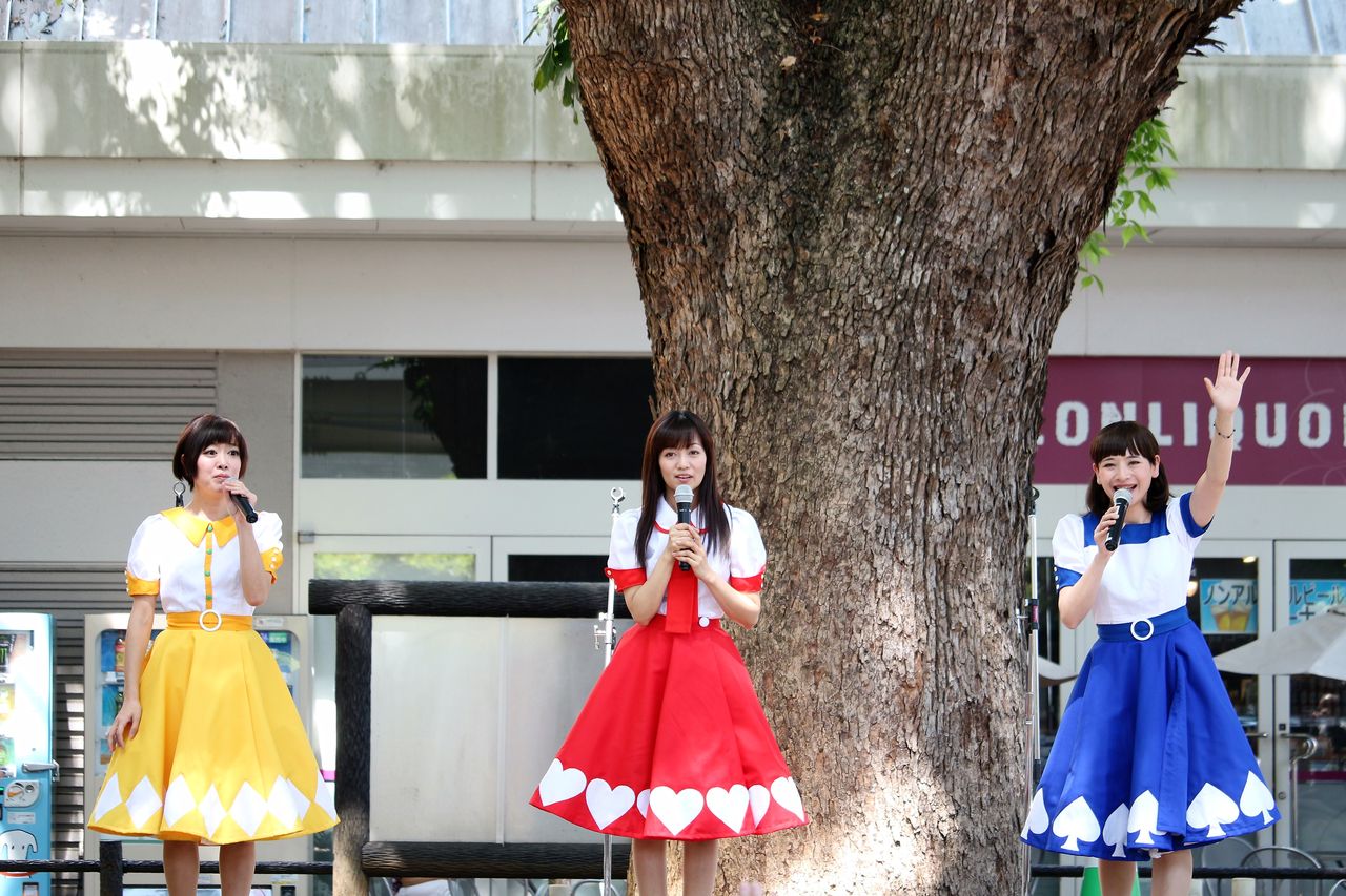 会場のくすの木広場ふれあいステージはその名の通り、樹齢100年を超える立派な楠の前にステージがあり、この日は柔らかな日差しと爽やかな風の中、スイートポップキャンディのステージが繰り広げられました。
