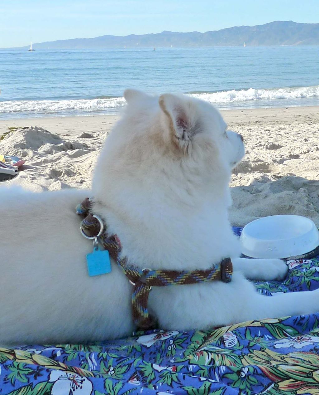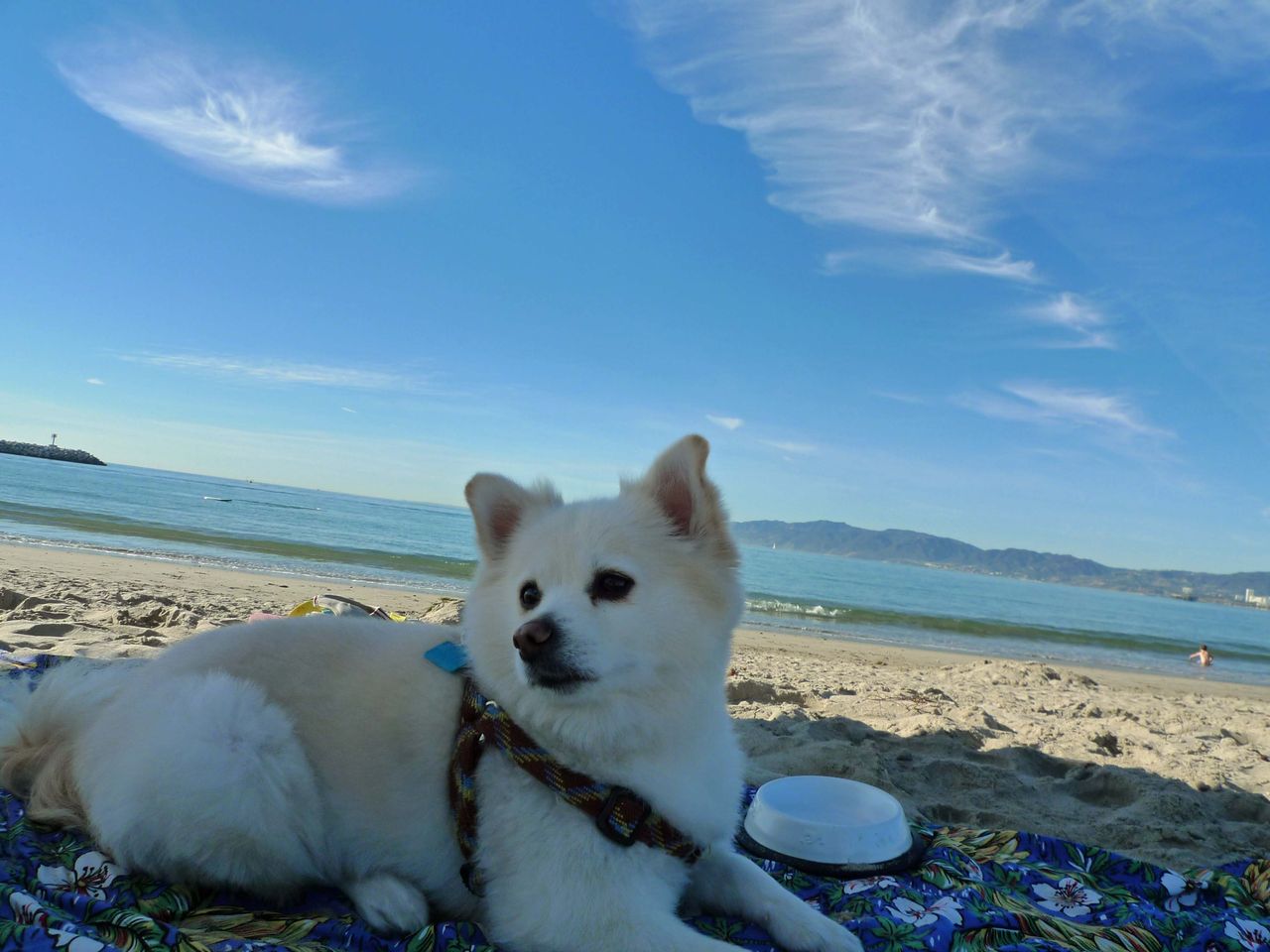 なので、モコもビーチにお出かけ。モコ、生まれて初めてのビーチ♪