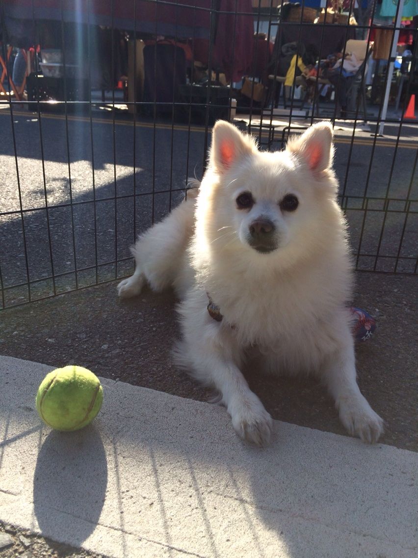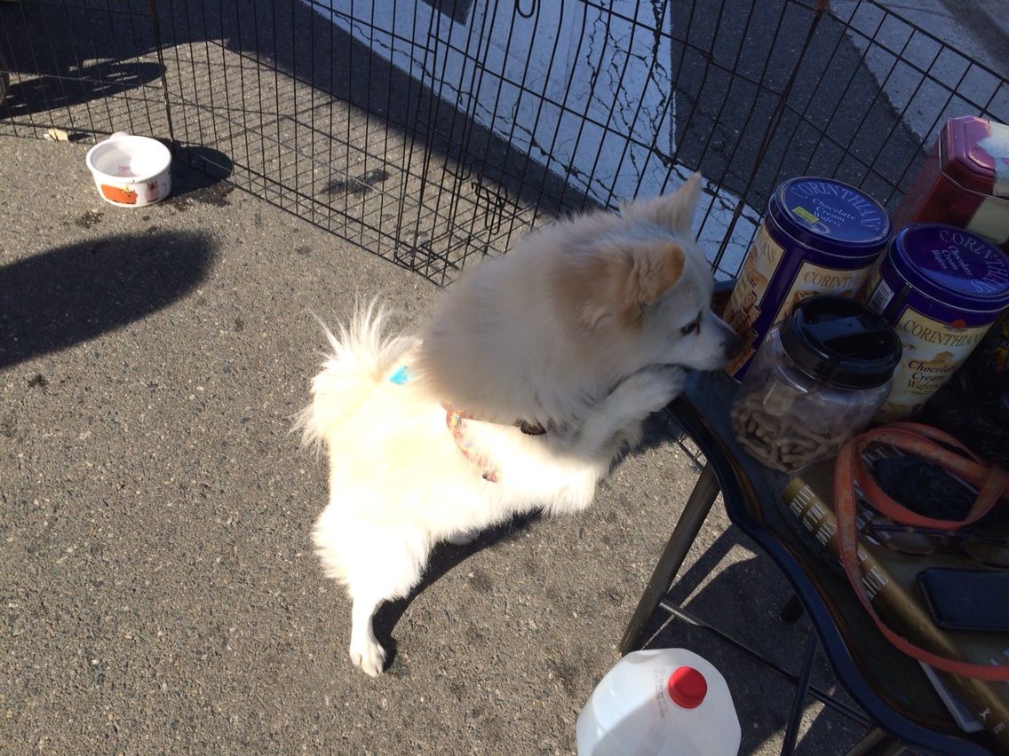 day care fun 2015.03.08 18:42 今週もファーマーズマーケットのデイケアにお出かけ おもちゃより、他のワンちゃんたちと遊ぶより、これがモコの楽しみ ちゃんと、おやつのありかを知ってます(^^)ここに入ってるんだよね。もっと欲しいなぁ~ どうやったら蓋取れるかな…