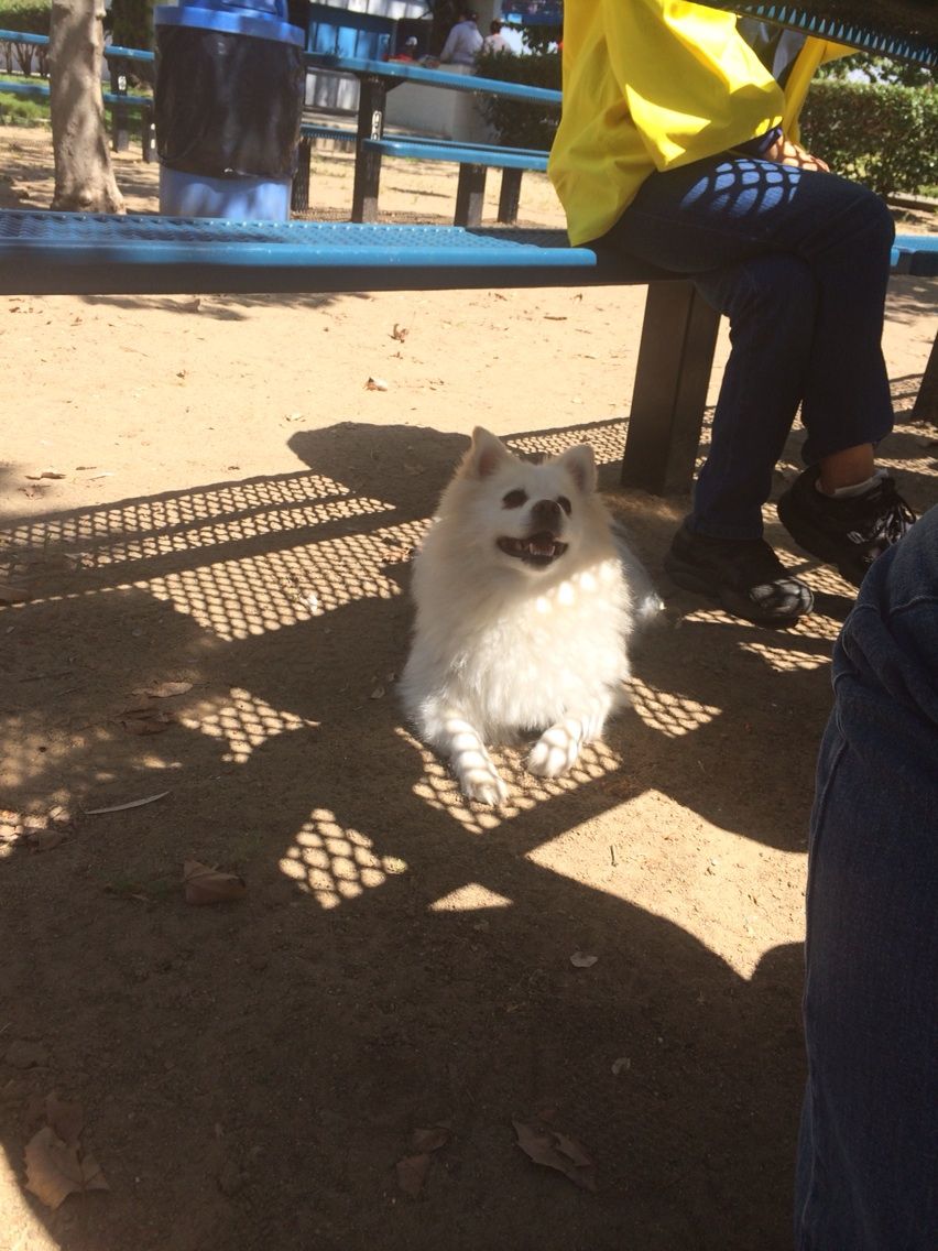 BBQでもアイドル 2015.03.29 23:24 今日は道産子会のBBQにモコとお出かけ。サプライズで誕生日祝いしてもらい、モコと写真撮ろうとしたけど、日陰から出てこない~_~;知らん顔されちゃいました こうやってベンチの下でずっと、皆に上目遣いでおねだり。みんなのアイドルと化してました(^○^)