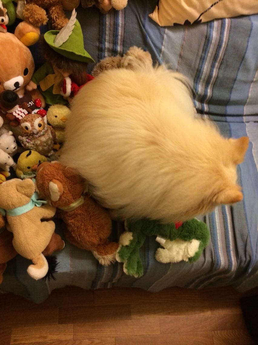 モコちんのお友達いっぱい発見。完全に同化したつもり⁇ 僕はちょっと大きいけど、可愛いから良いよね?