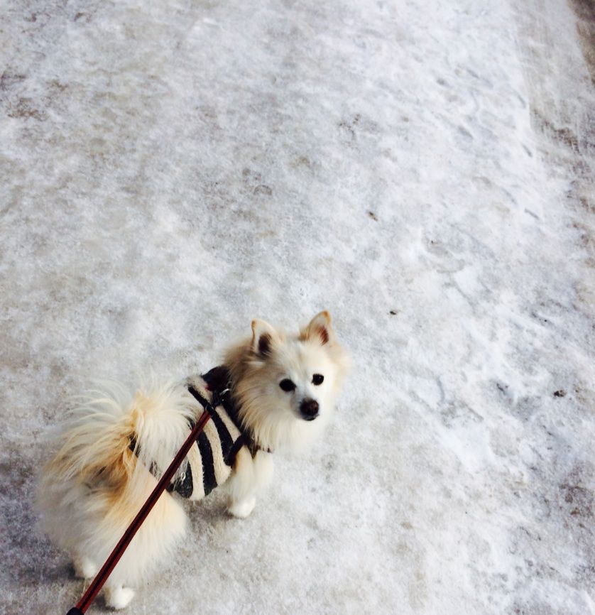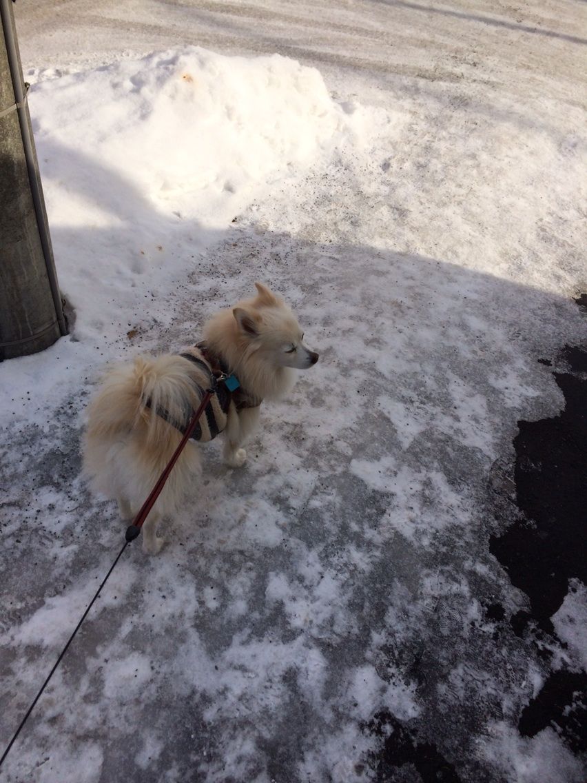 スケートリンク 2016.01.08 04:04 暖冬の今年は雪が少なく、昼間に解けた雪が夜には凍ってアイスリンク状態で、毎日歩くのも一苦労。夏国育ちのモコですが、そんな雪道にもすっかり慣れて滑り歩き満喫中。ヨチヨチ歩きの私が散歩させられてます(._.) マミー早く!と急かされ…