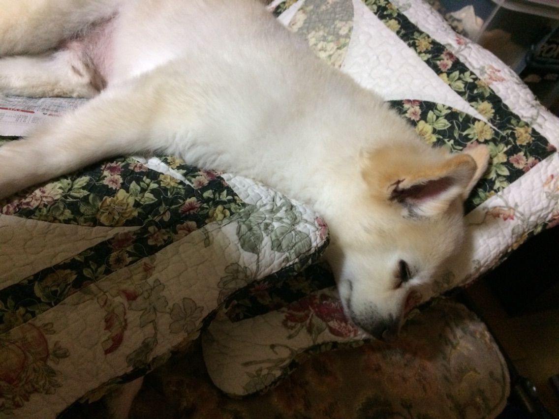 眠り王モコは、今日も気持ち良さそうに夢の中。世の中は仕事始めのようですが、まだまだモコはぐうたら正月続いてます