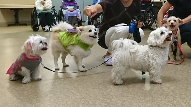 初めての場所に行くのが大好き、人間大好き、かわいいってされるの大好き、無駄吠えも噛んだりもしない温厚な性格だからセラピードッグに向いてるのでは?と以前から思っていたのですが、知り合いのご夫婦からハロウィーンのボランティアのお誘いを受け、日系人の高齢者が暮らす介護福祉施設に行ってきました。