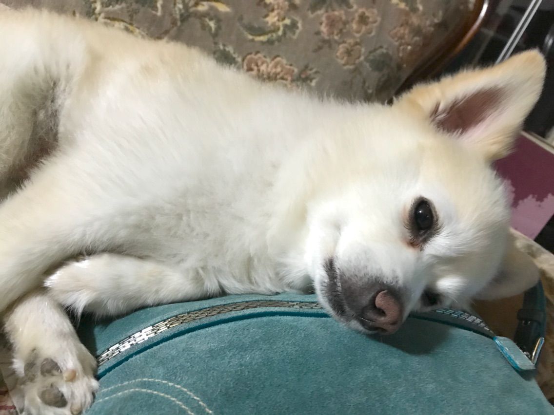 お出かけ阻止中 2018.01.21 01:46 鞄見当たらないなぁと思ったら、モコの寝床に… 観察していたら、体制変えて完全枕状態に 気持ち良く寝てるのに、何撮ってるのよ! 邪魔しないでよ、気持ち良く寝てるんだから…
