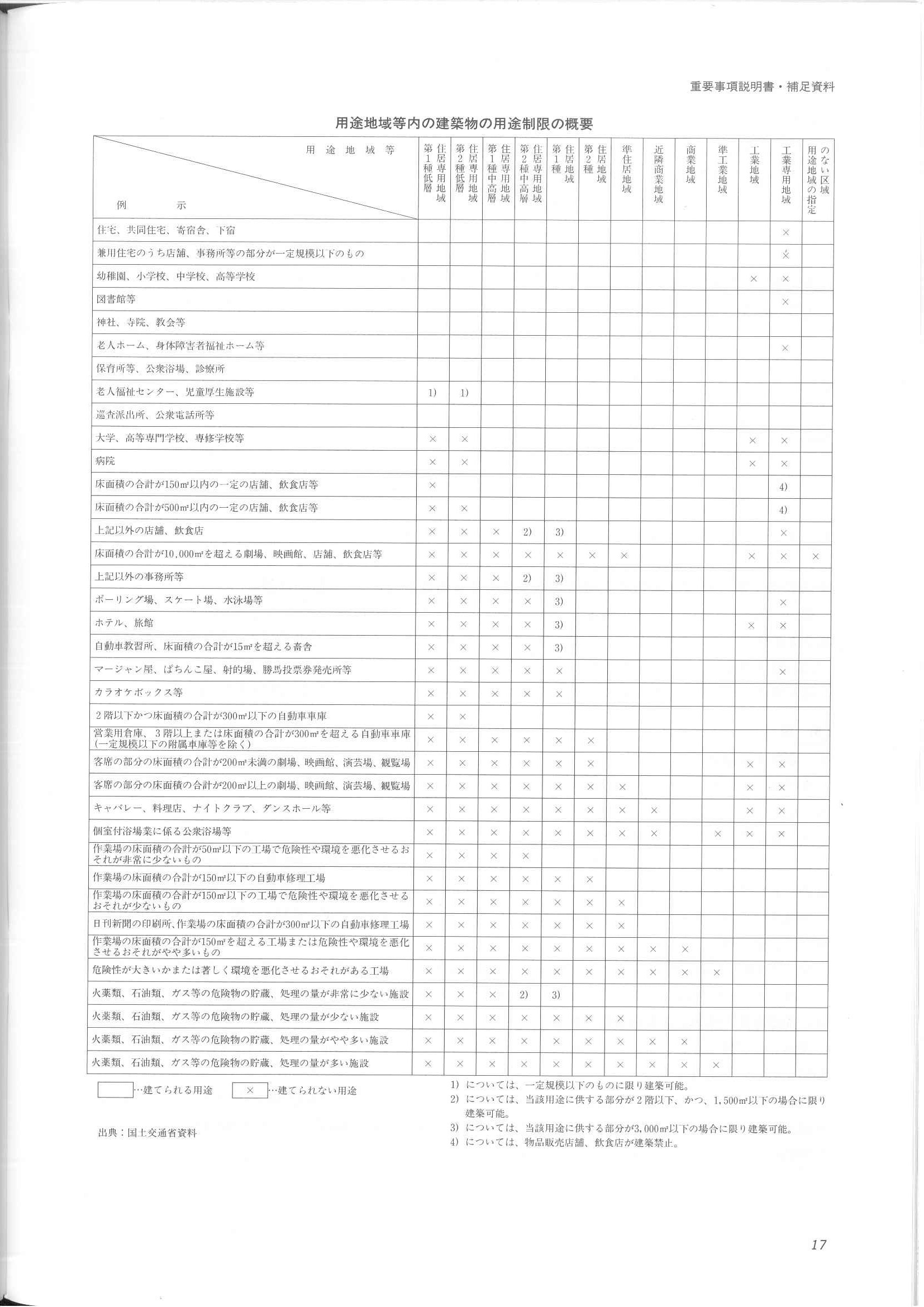 用途地域によって学校・病院など建てられない