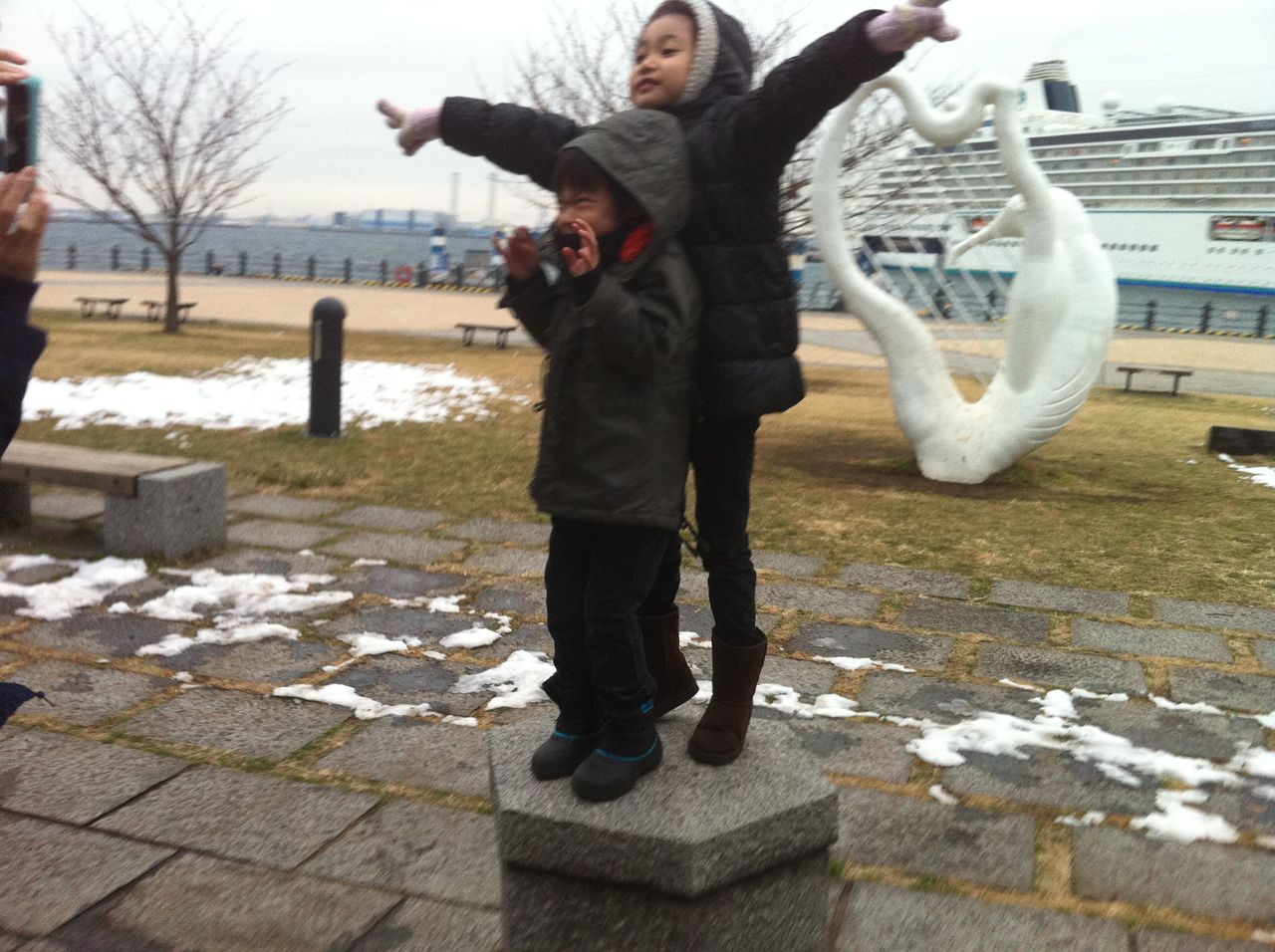 広場で子供たちが走り回ります。