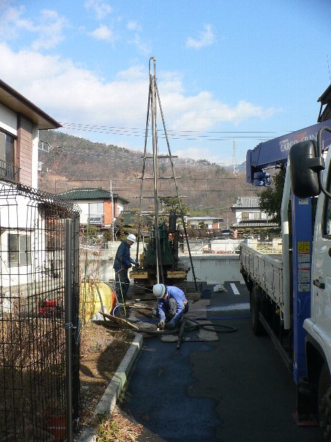 #75 YA邸 No.1 2006.01.30 12:24 本日はYA邸の地質調査を行いました。この物件は基本設計が完了し、2月から実施設計に入る予定です。鉄骨造3階建て,延べ床面積は40坪程度です。住宅建設の際の地質調査としては、スウェーデン式サウンディングなどが多く適用されていますが、今回は鉄骨造3階建ての為、ボーリングによる標準貫入試験を行いました。ボーリングでは土質資料を採取しながら調査を行い、より精度が高い調査が出来ます。(ただし費用は4~5倍程度かかります。)順調に作業が進んだため、1日で完了しました。