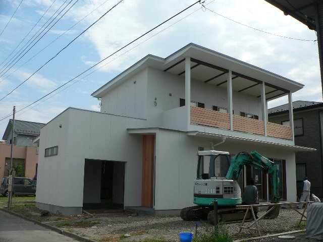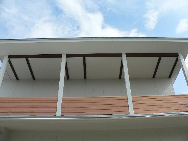 バルコニー手摺と玄関脇に板壁が取り付けられました。