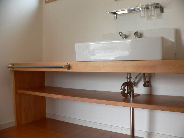 洗面カウンターは棟梁の力作です。
