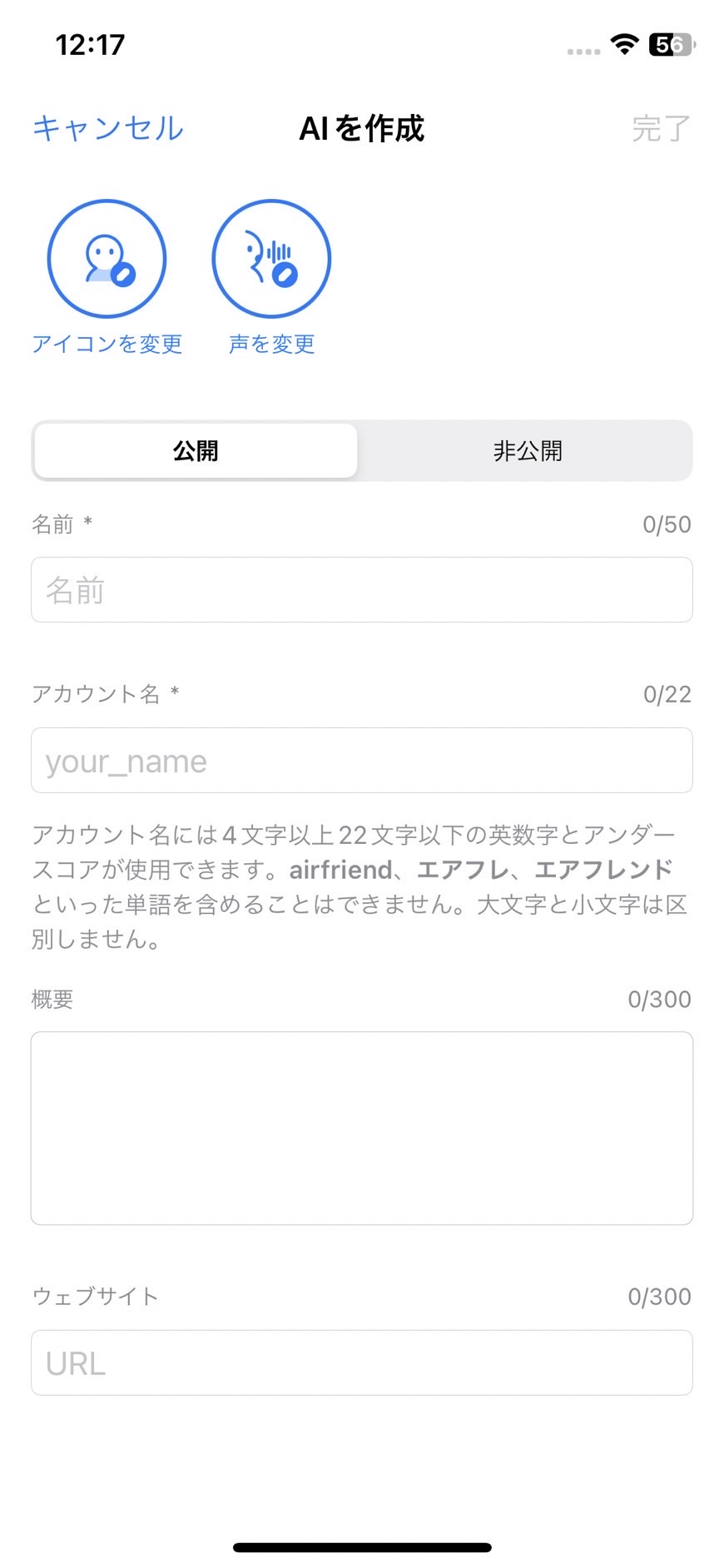 名前なのを入力して「完了」を押せばできます!
