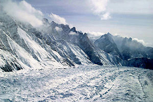 として、ヒマラヤ山脈の氷河が溶けて巨大化した氷河湖が