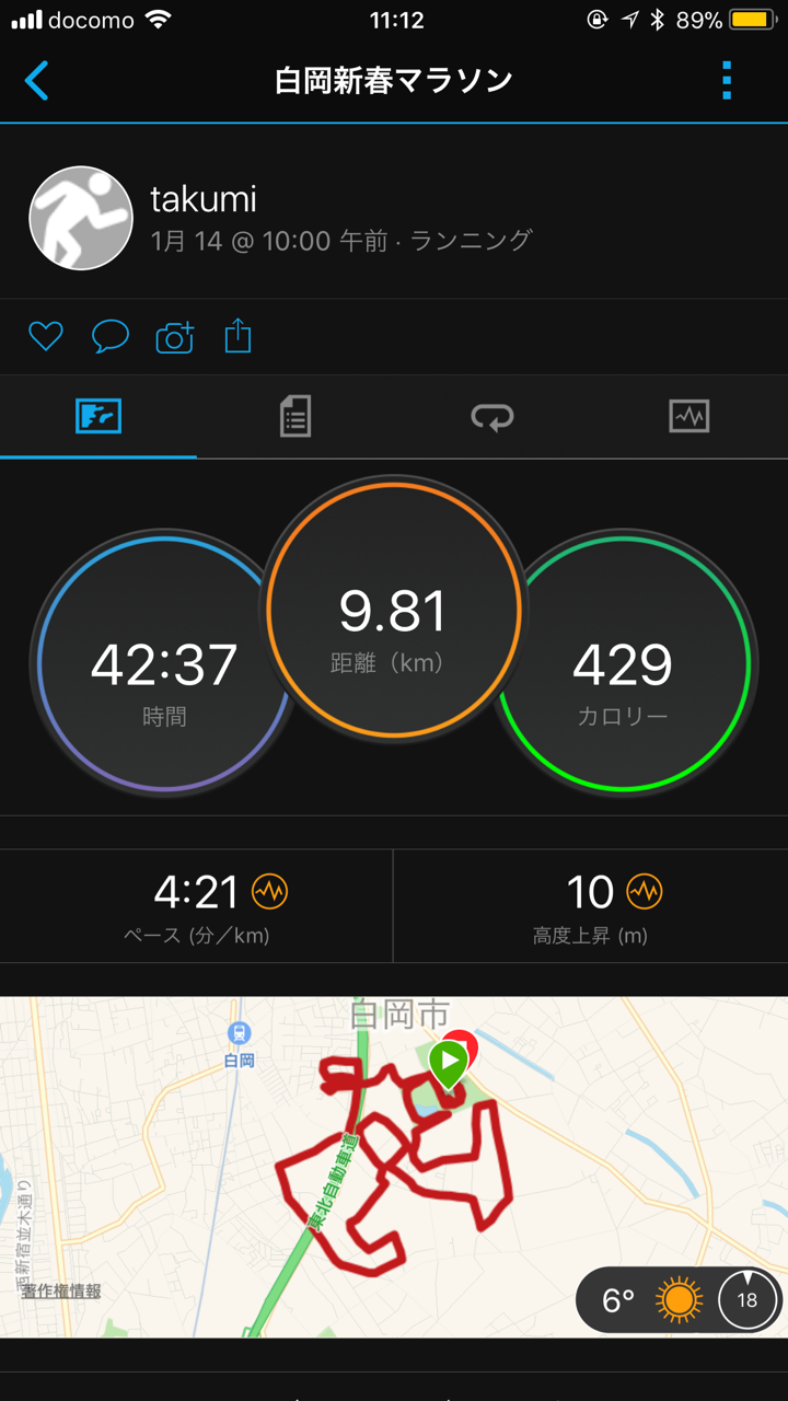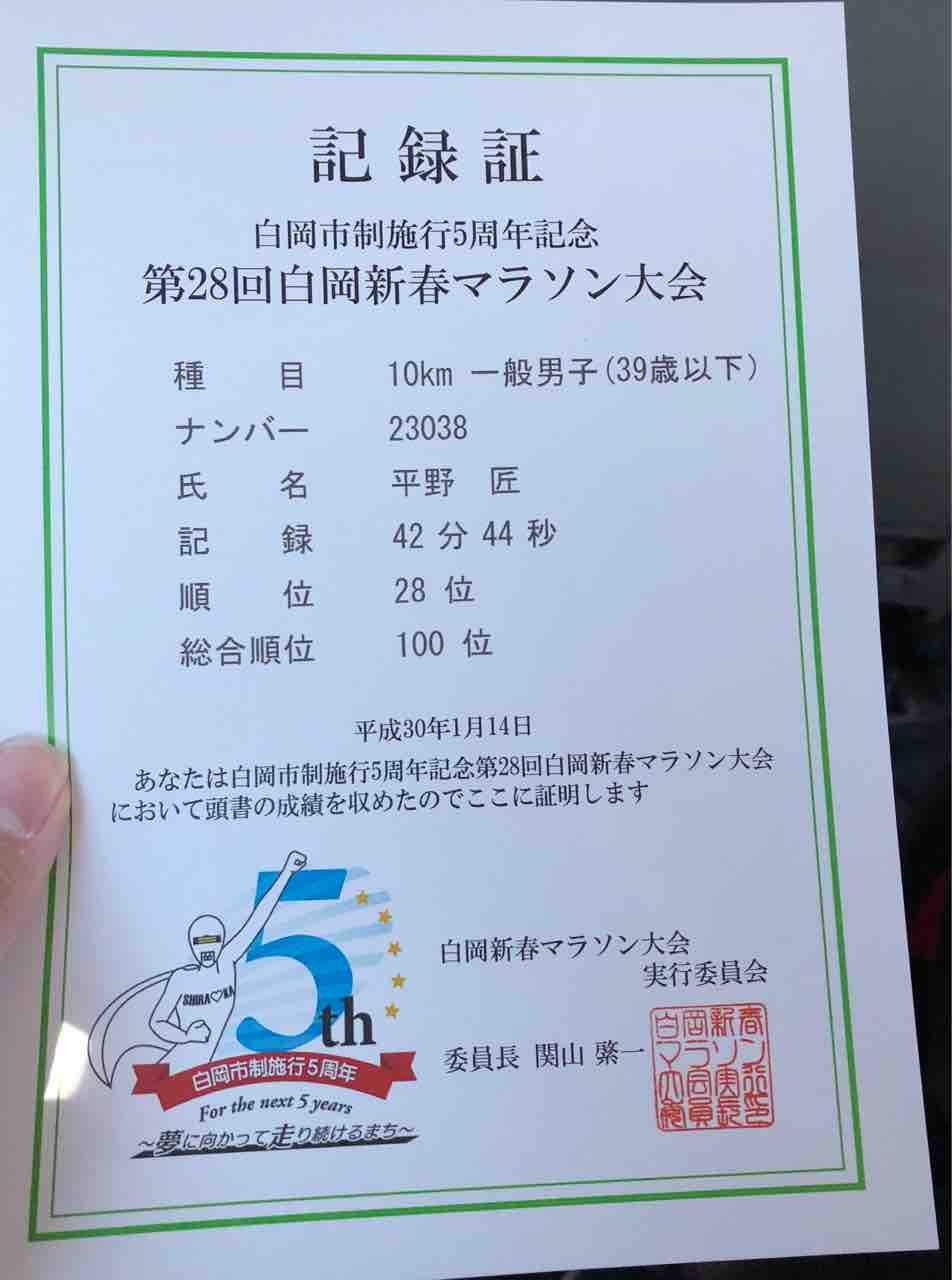 白岡新春マラソン 2018.01.14 07:56 白岡新春マラソンを走ってきました今回のタイムは42分44秒(PB更新)今日は結構走りやすかったです次回の大会は2月25日のふかやシティマラソンですPB更新に向けて頑張ります。