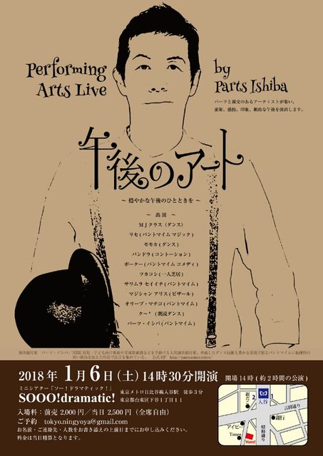 NHK子ども向け番組や宝塚歌劇団などを手掛ける演出振付家、パーツ・イシバさんのパフォーミングアーツライブに一人芝居で出演します。