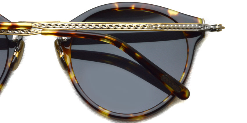 往年のVINTAGEフレームを彷彿させる温もりのある質感のアセテートと、繊細な彫刻を施したメタルパーツとの絶妙なハーモニーが美しい