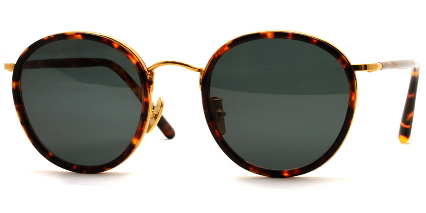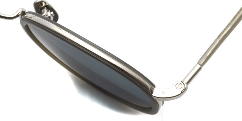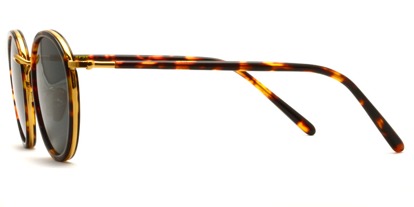 レンズをアセテート素材とメタルで挟み込んだ絶妙なサイズ感のラウンドサングラス