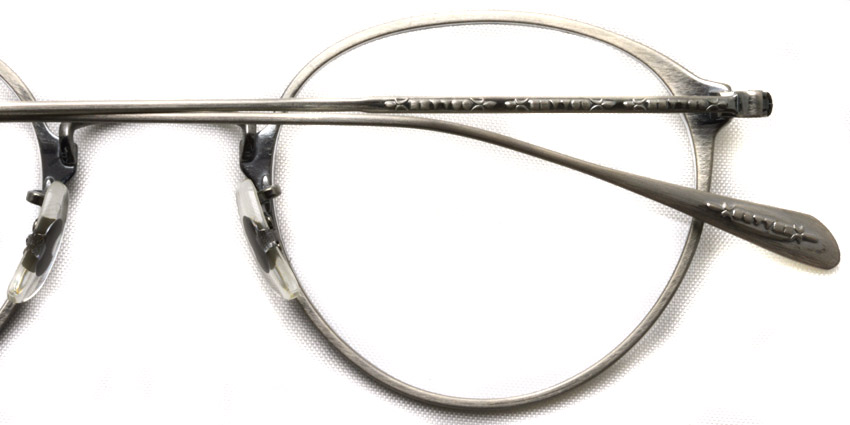 テンプル根元とテンプルエンドの"●●▼▼■■"のオリバーピープルズオリジナルマークが美しく刻印されています