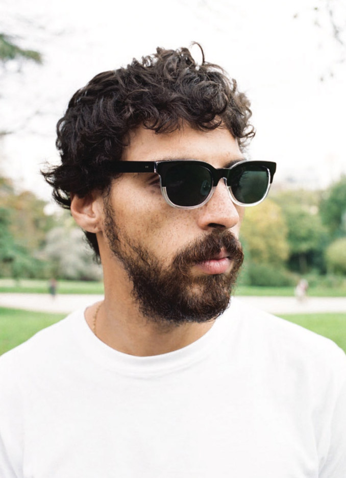表(1枚目)のプラスチック枠にはサングラスレンズ、2枚目のメタルフレームにはナイロールフレームのクリアレンズがハマっています