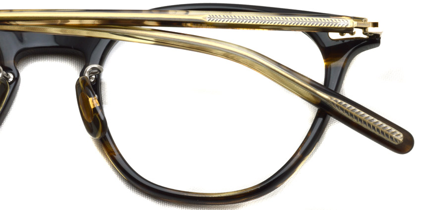 30周年モチーフである「Feather」形状の新規デザインのテンプル芯を、初期モデルOP-78と同じ「芯張り」で挟み込んだテンプルが特徴的なフレーム