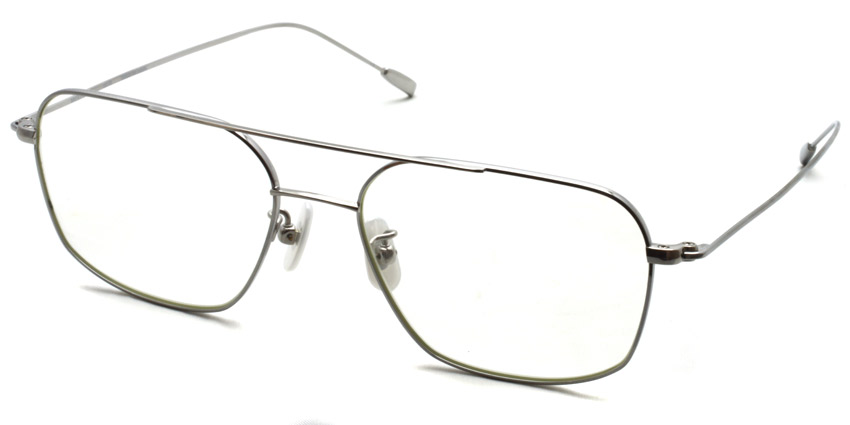 主張のあるフラットな2カーブレンズと0.8㎜の極細なβチタンのリムとテンプルで軽さと高級感を演出