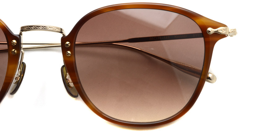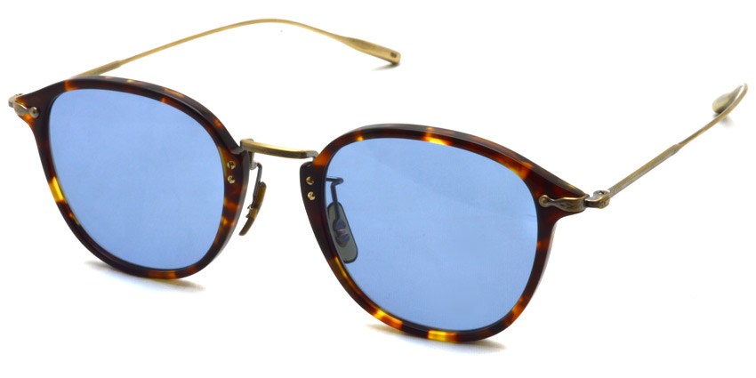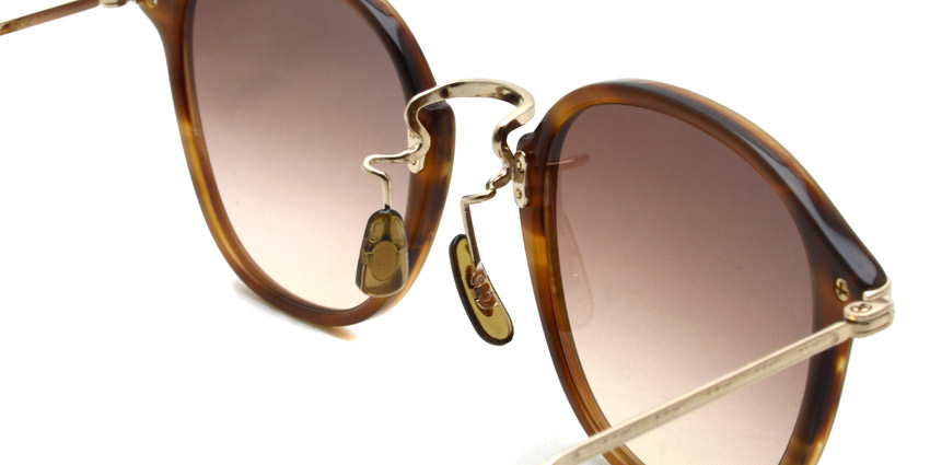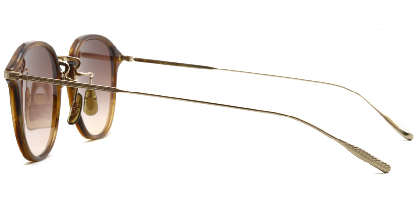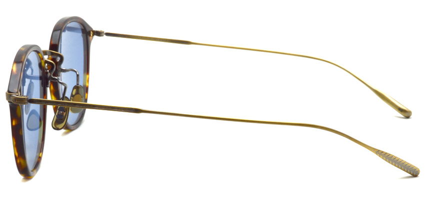 オリバーピープルズが最も得意とするウェリントンシェイプのコンビネーションスタイルに「フェザー」形状のβチタンテンプルを採用したサングラス
