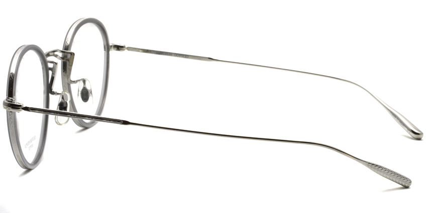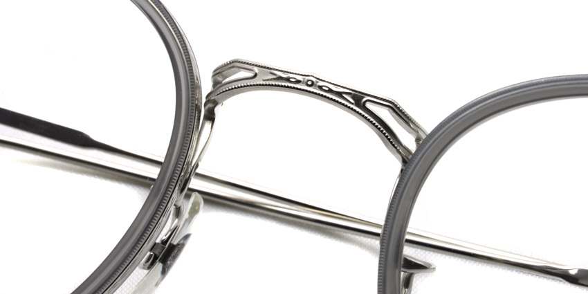 1930年代のヴィンテージフレームをベースに新たにデザインして型から興したブリッジにフェザー形状のβチタンテンプルを使用したラウンドソフト枠