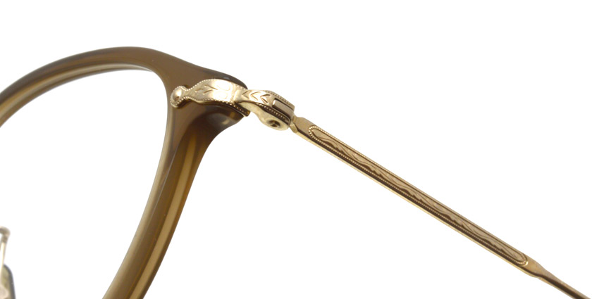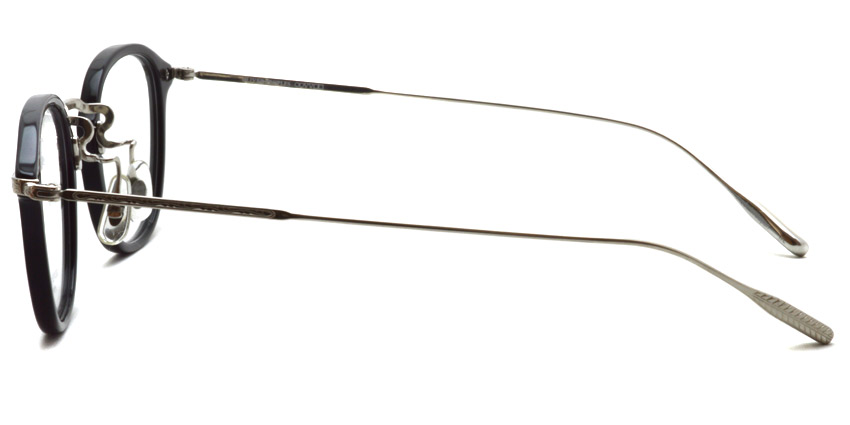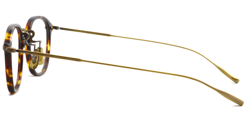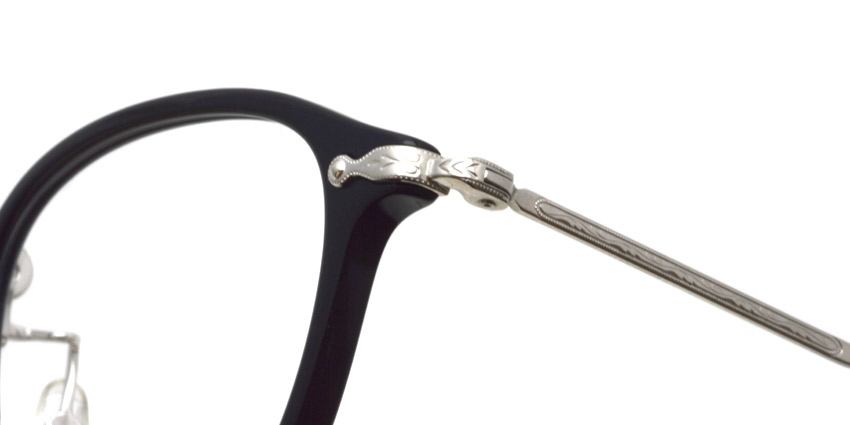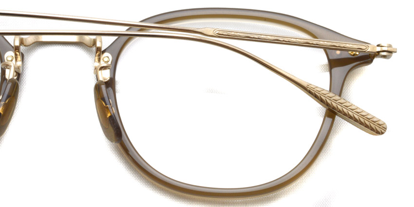 やや小ぶりなウェリントンシェイプのフロントに「フェザー」形状のβチタンテンプルを採用したコンビネーションフレーム