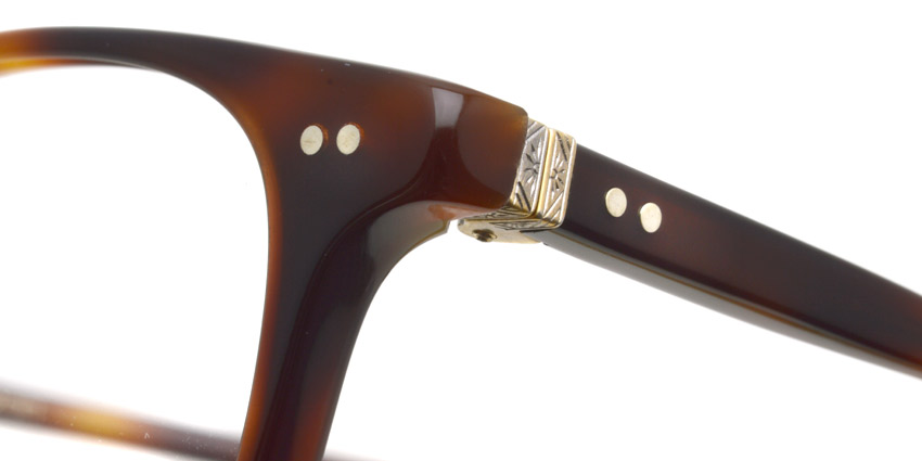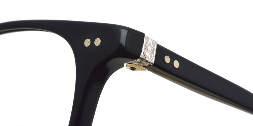 3面にエングレービング(彫金)を施した丁番一体型のオリジナルパーツをテンプル合口に採用したプラスチックウェリントンフレーム