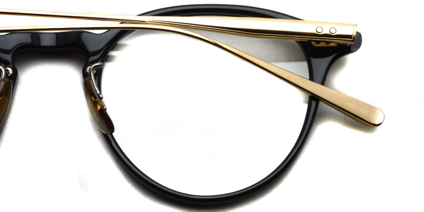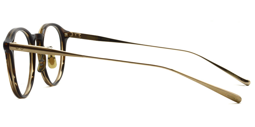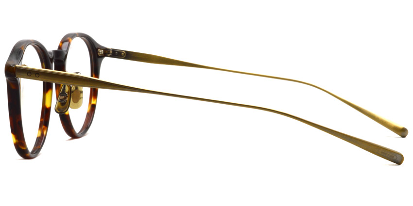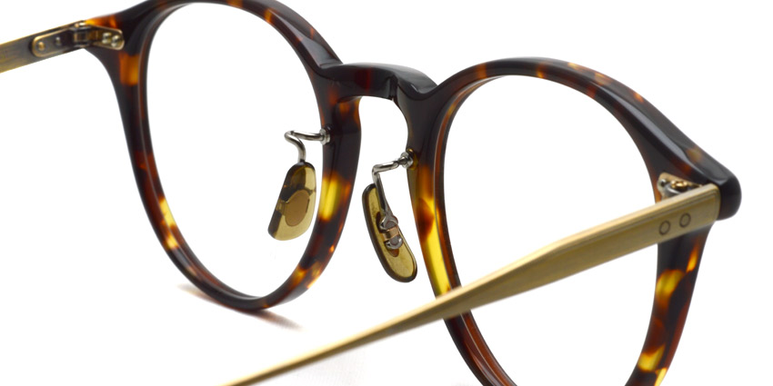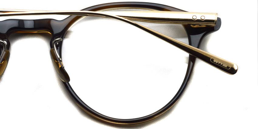 特殊な2次元プレスによって3次元のドット柄を施した、幅広で甲丸なβテンプルが特徴的なオーセンティックなボストンフレーム。メタルテンプルと丁番は2PINでかしめることにより、オリバーピープルズらしいヴィンテージ感を表現