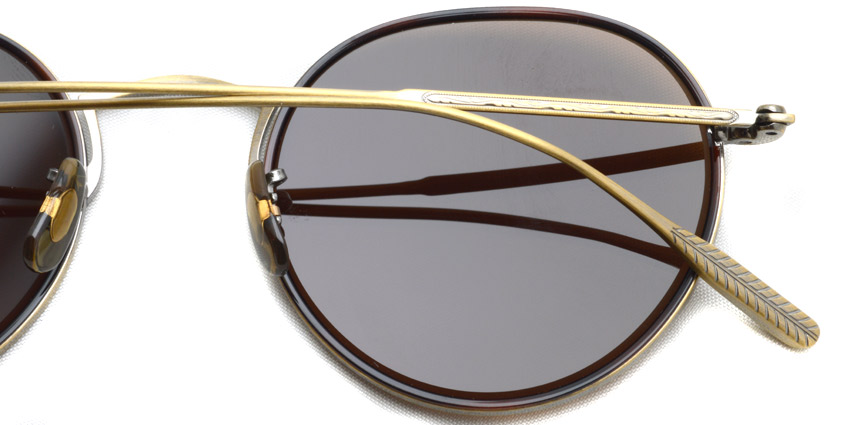 変形ボストンシェイプに30年前に発売された「OP-LE」モデルの特徴的なブリッジを現代的にアップデートしてミックスし、フェザー形状のβチタンテンプルを採用したラウンドメタルサングラス