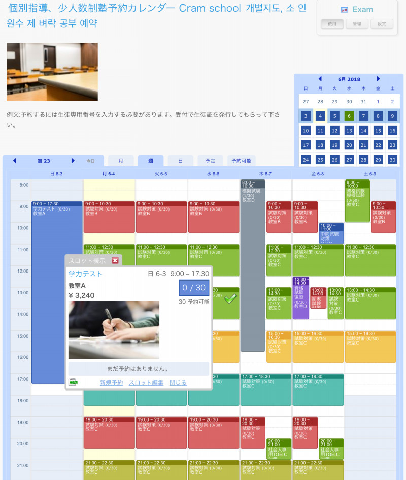 体験入塾のフォームもカレンダーと統合して利用可能です。