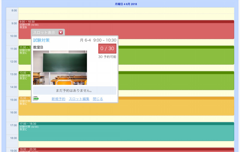 下記の様な定員制のカレンダーであればアカウント作成から公開まで1時間もかからずに作成できる場合もあります、非常に簡易です。