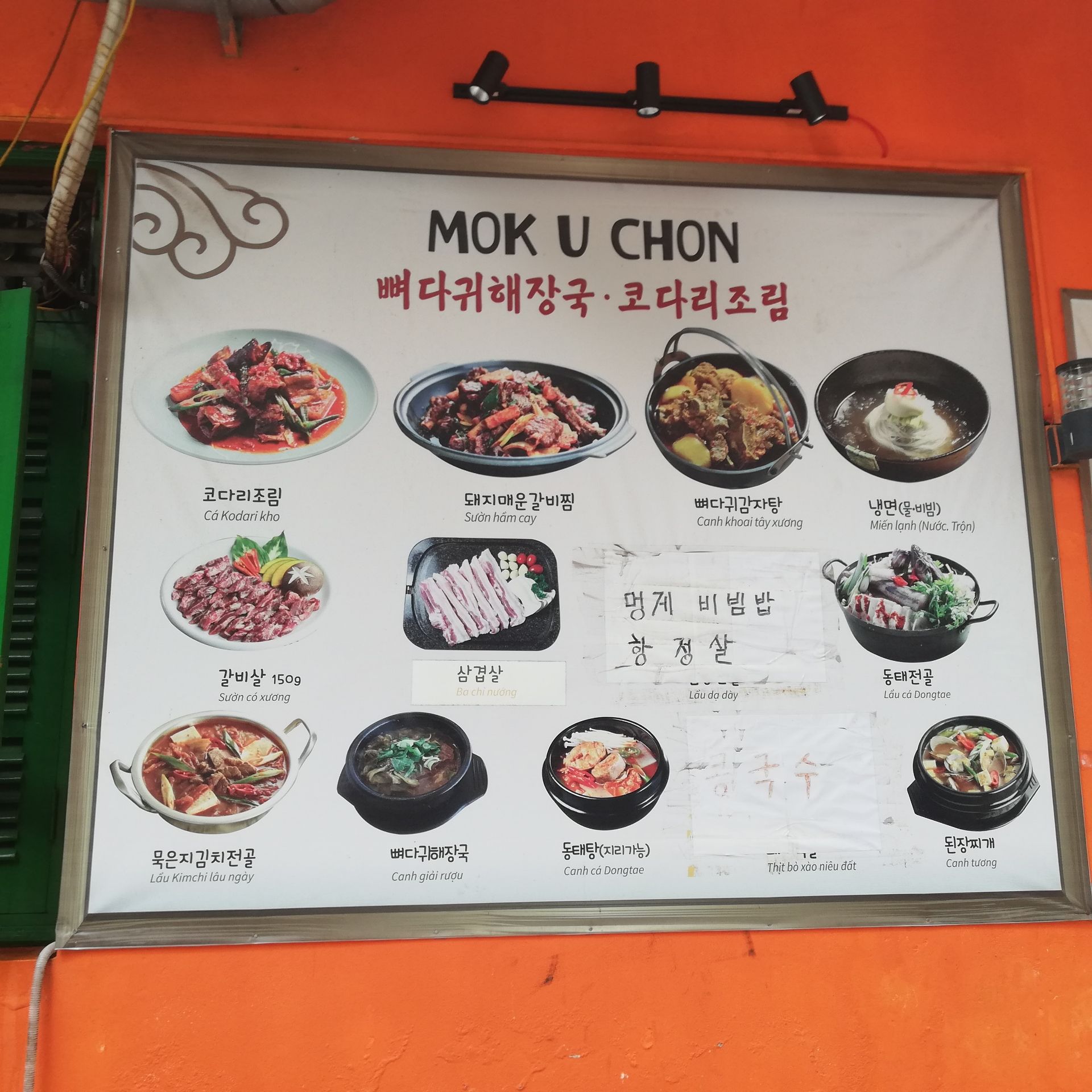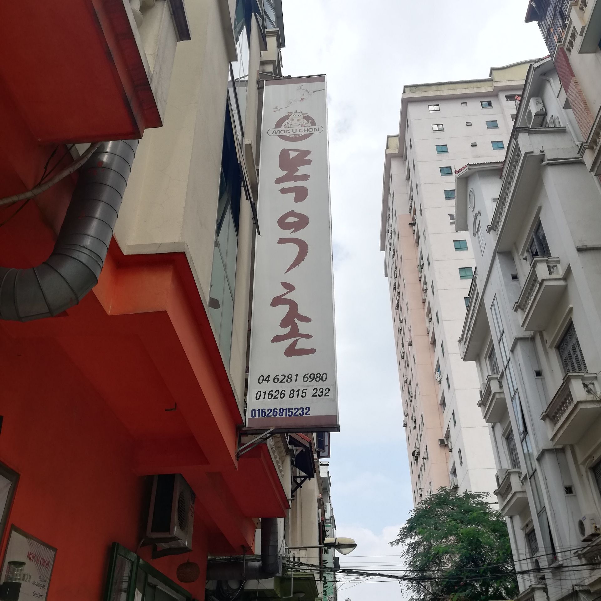 Tran Duy Hung通りからEUROWINDOW脇のNguyen Thi Dinh通りへ2つ目の角を右折し数分したところにある목우촌 MOK U CHON(韓国料理)というお店です。