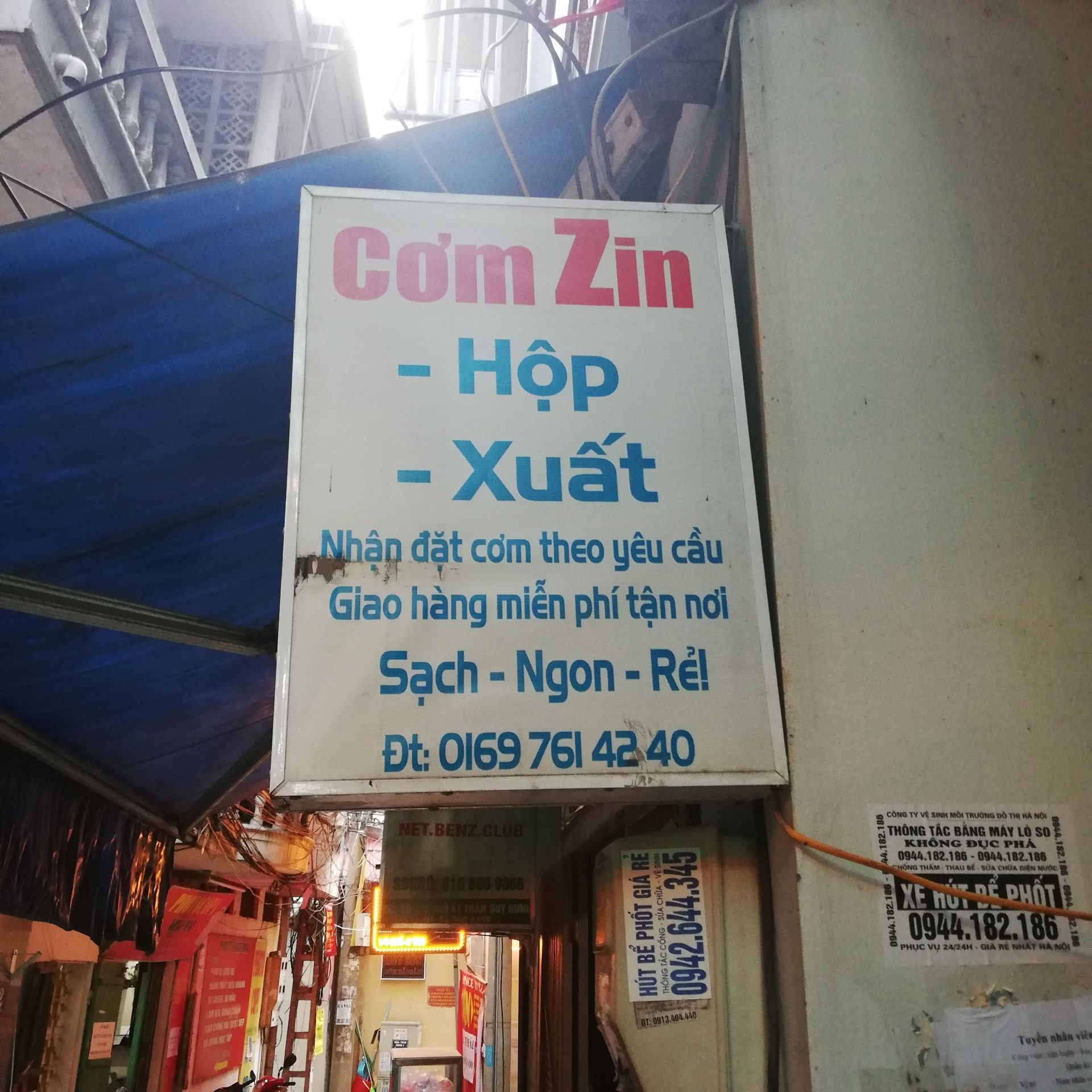 Tran Duy Hung通りからEUROWINDOW脇のNguyen Thi Dinh通りへ1つ目の角を右折した小さな路地を奥に進んだCơm bình dân (平民飯)の食堂でございます。