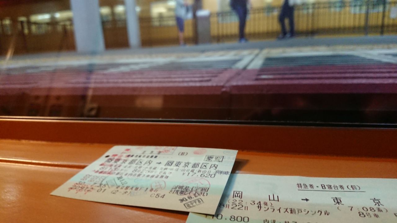 岡山22:34発・東京7:08着、約8時間30分の、低い目線での旅でした。