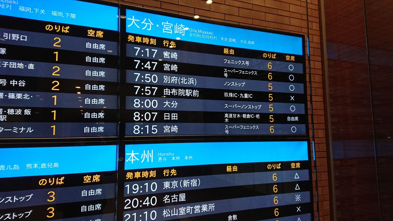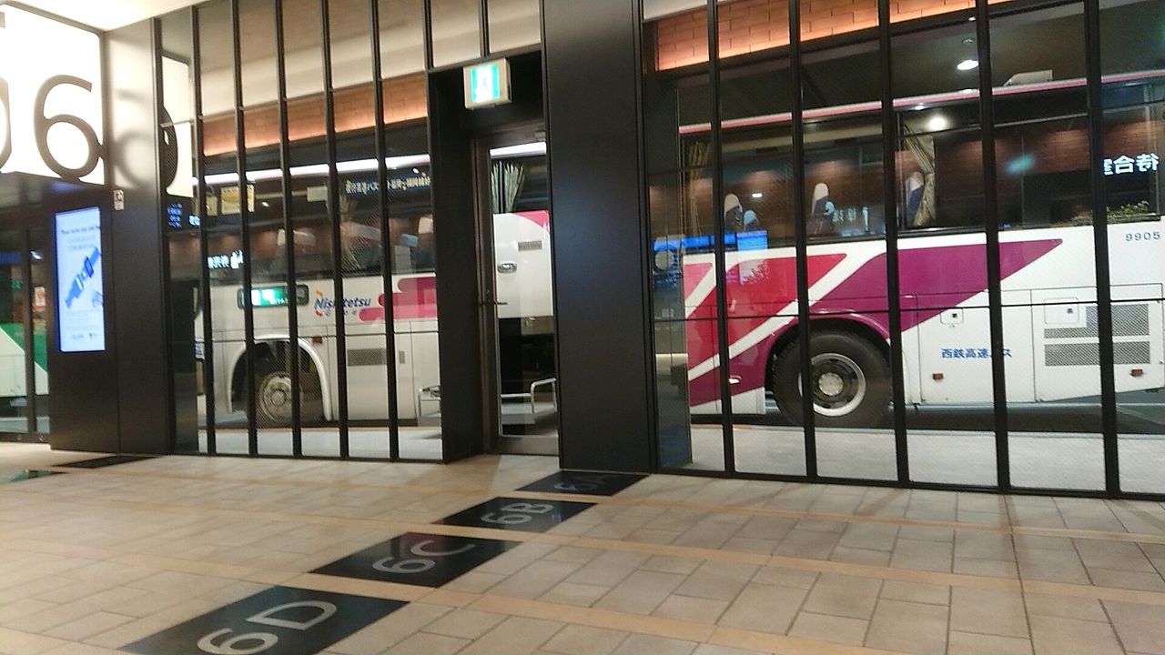 福岡の中心街のバスターミナルは、博多バスターミナルと西鉄天神高速バスターミナルの2つがありますが、今回は後者の西鉄天神高速バスターミナルから7:17発の「フェニックス号」に乗車します。