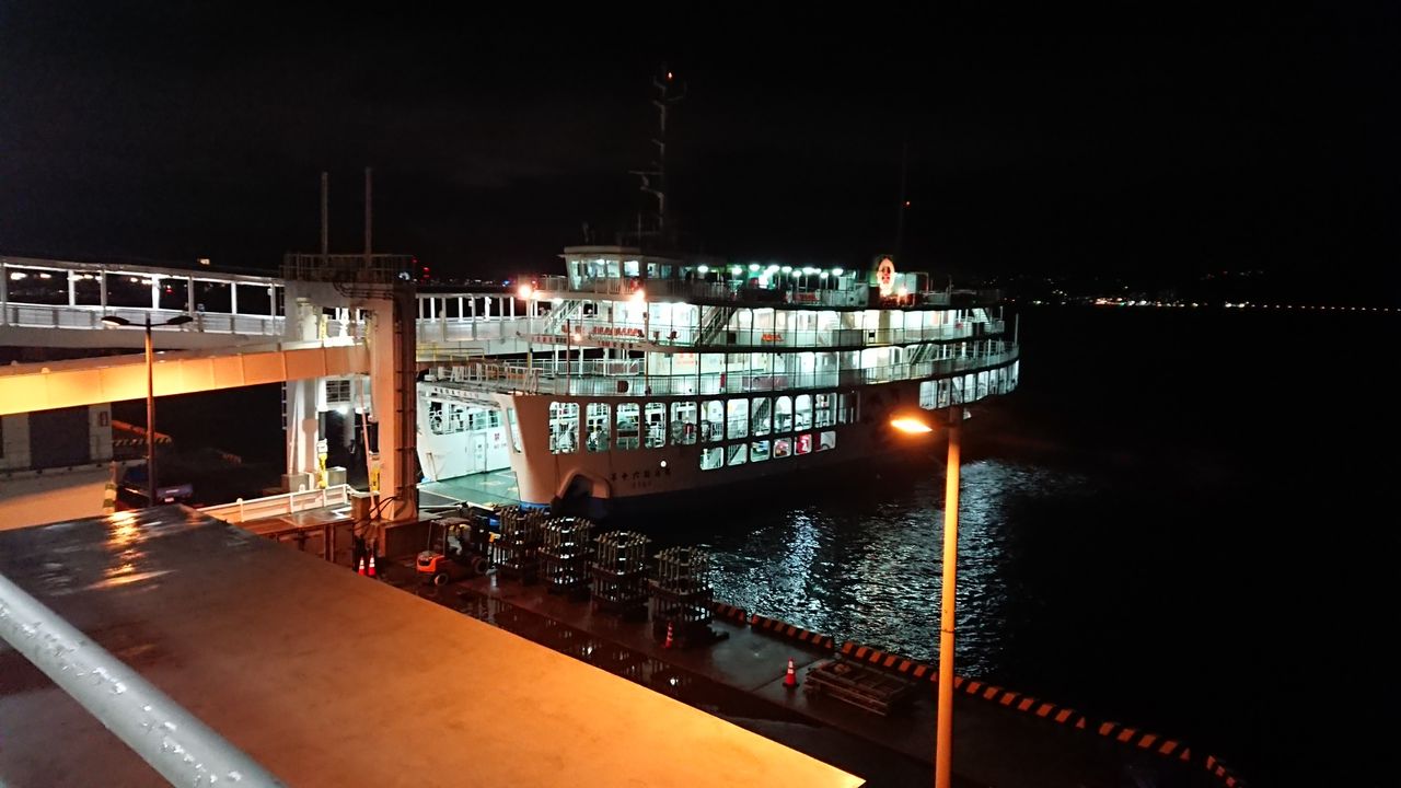 3店舗まわったあと、福岡行夜行便に乗るまでの間、暗くて景色も見られないし繁華街もほぼお店閉まっているしで特にすることもなかったので、SUNQパスが利用できる航路のひとつ、桜島フェリーを利用して桜島へ向かってみました。
