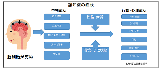 と違い獲得した知的機能が低下し続け、複数の認知機能障害のために