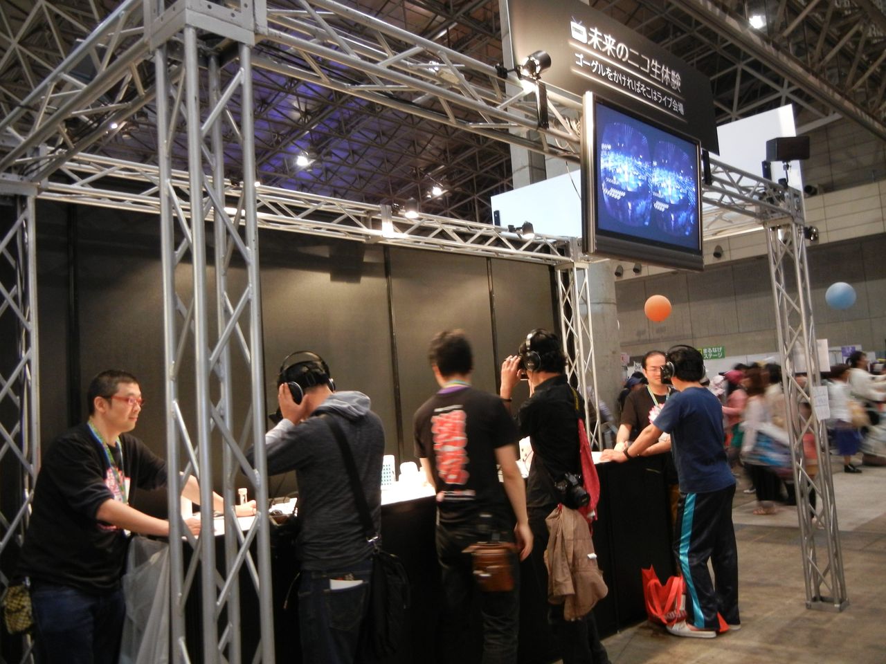 そんなオキュラスリフトに魅了され、新しいソフトまで作っちゃった人物が「ニコニコ超会議3」にいました!ドワンゴの岩城進之介(MIRO)さんは、ニコファーレの近未来的ライブ映像をオキュラスリフトで鑑賞できるソフトを開発。「超時空ニコニコ研究所」ブースの企画「未来のニコ生体験」で公開しました。