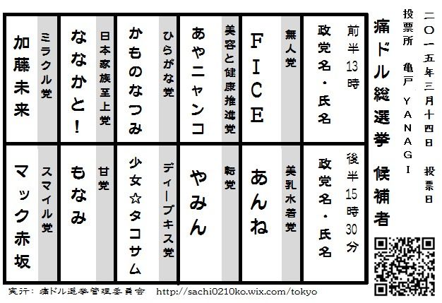3月14日(土)13時〜、亀戸yanagiにて「痛ドル総選挙」が開催されます!