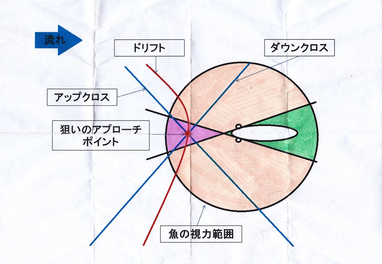 魚は視野に入った段階で動いてしまうこともあるでしょうからこの図はあくまで基本的な図です。