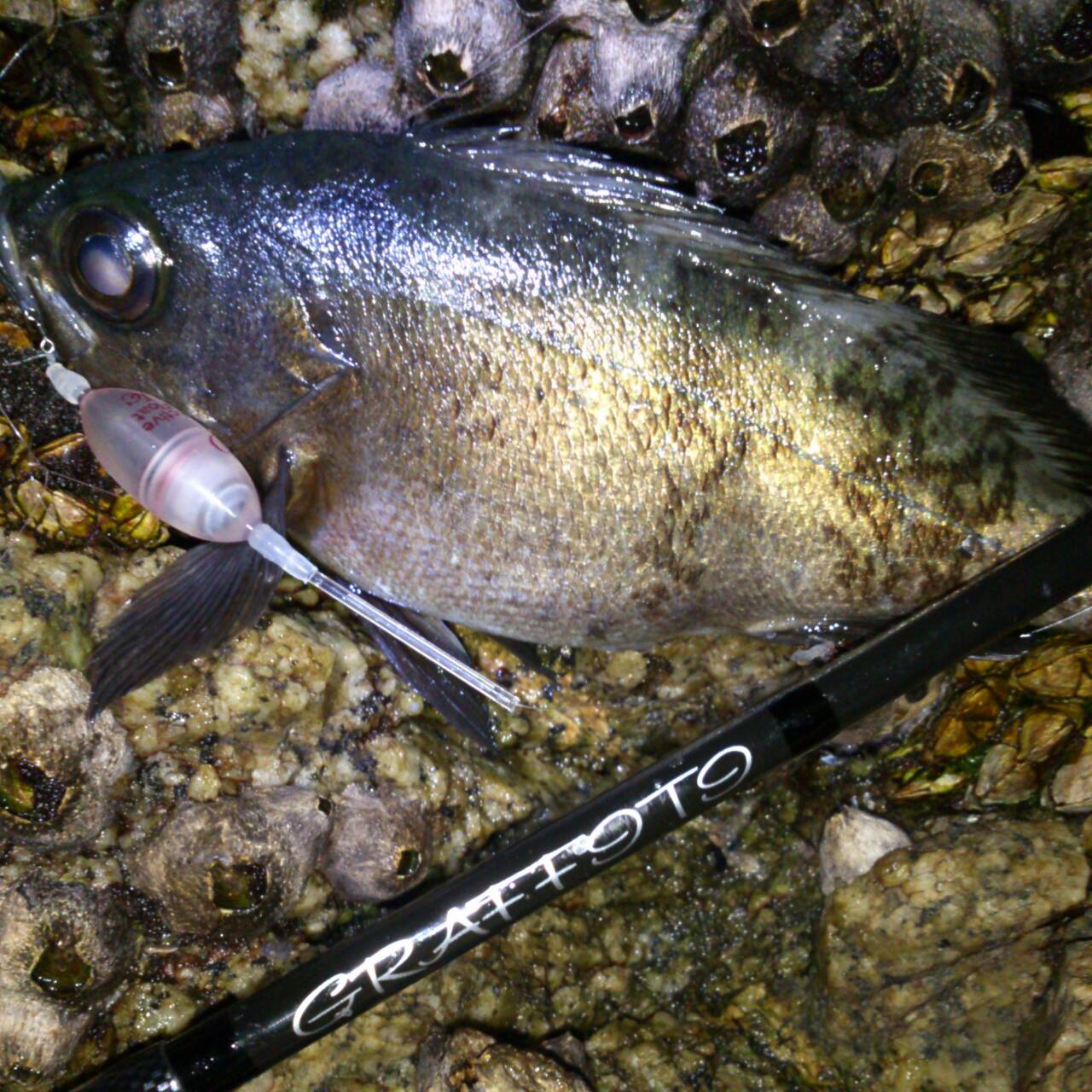 上と同じ魚、デイで28cm。ちょいビビるね。(笑)魚中心アングル。