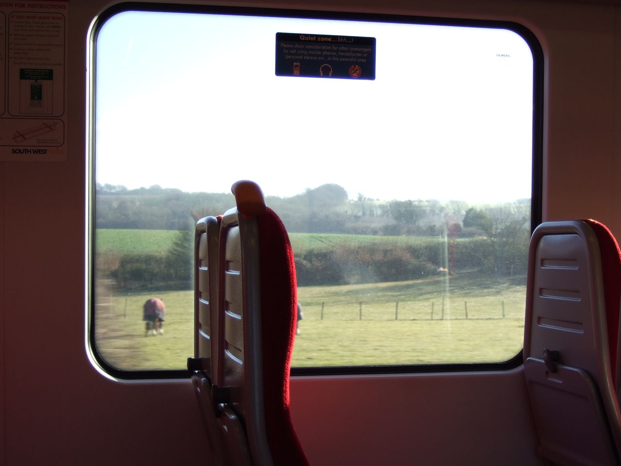 ・帰りの列車を間違える。車掌の言葉が分からなくて焦るが、どうにかロンドンへ戻る。大都市圏なのに窓から広がる景色はまるで北海道のよう