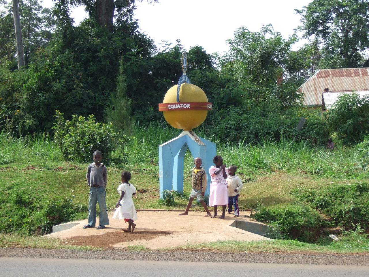 赤道を初めて超える 2009.09.02 14:59 スタディツアーの途中の路上で、赤道上で記念撮影をすることになった。「どんなところだろう」と期待しつつ、バスが止まったのは何てことはない、一般車道沿い。「また故障だろうか?」と思いきや、そこに「Equator」の看板が。以前イギリスに渡航した時にグリニッジ天文台で観光スポット化された標準子午線を見ていたこともあって、少し寂しく感じた。後に調べてみると、場所によっては「赤道ビジネス」として、水流の回転方向の変化や通行証明書を発行して稼ぐケニア人もいるそう。彼らに出会えなかったのは残念。