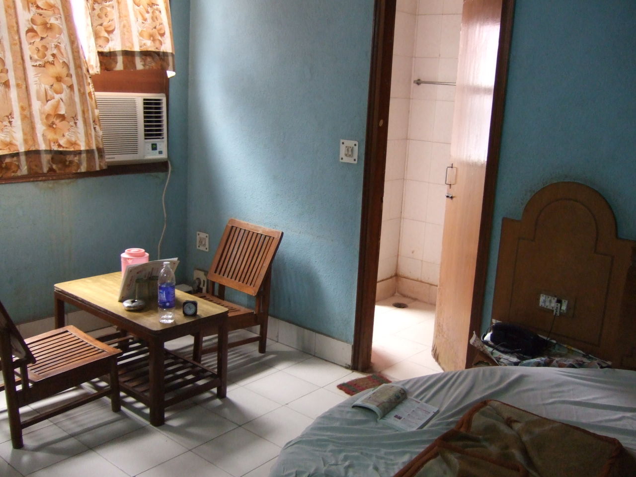 1泊1500円ほどだったが、1軒目に比べれば遥かに文明的である。クーラーはついているし、コンセントも、トイレもある。ここならよいのではないか、ということで決めた。シャワーを浴びて仮眠を取ってから気付いたが、あのインド人は、最初から我々がこっちのホテルを選ぶことを見越して、1軒目のあの牢屋風の部屋を見せたのではなかろうか? なるほど、これがインド流ビジネスか。