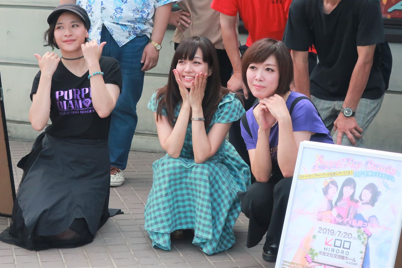「週末enjoyラジオ どよナビ!」は街なか情報局のサテライトスタジオからの生放送。収録ブースの外にはたくさんのスイートポップキャンディ応援団。また応援団がスイートポップキャンディのでっかい横断幕を掲げ、カンペを使ってスイートポップキャンディの3人に指示を出したりと「恋の公園通り」方式での応援。