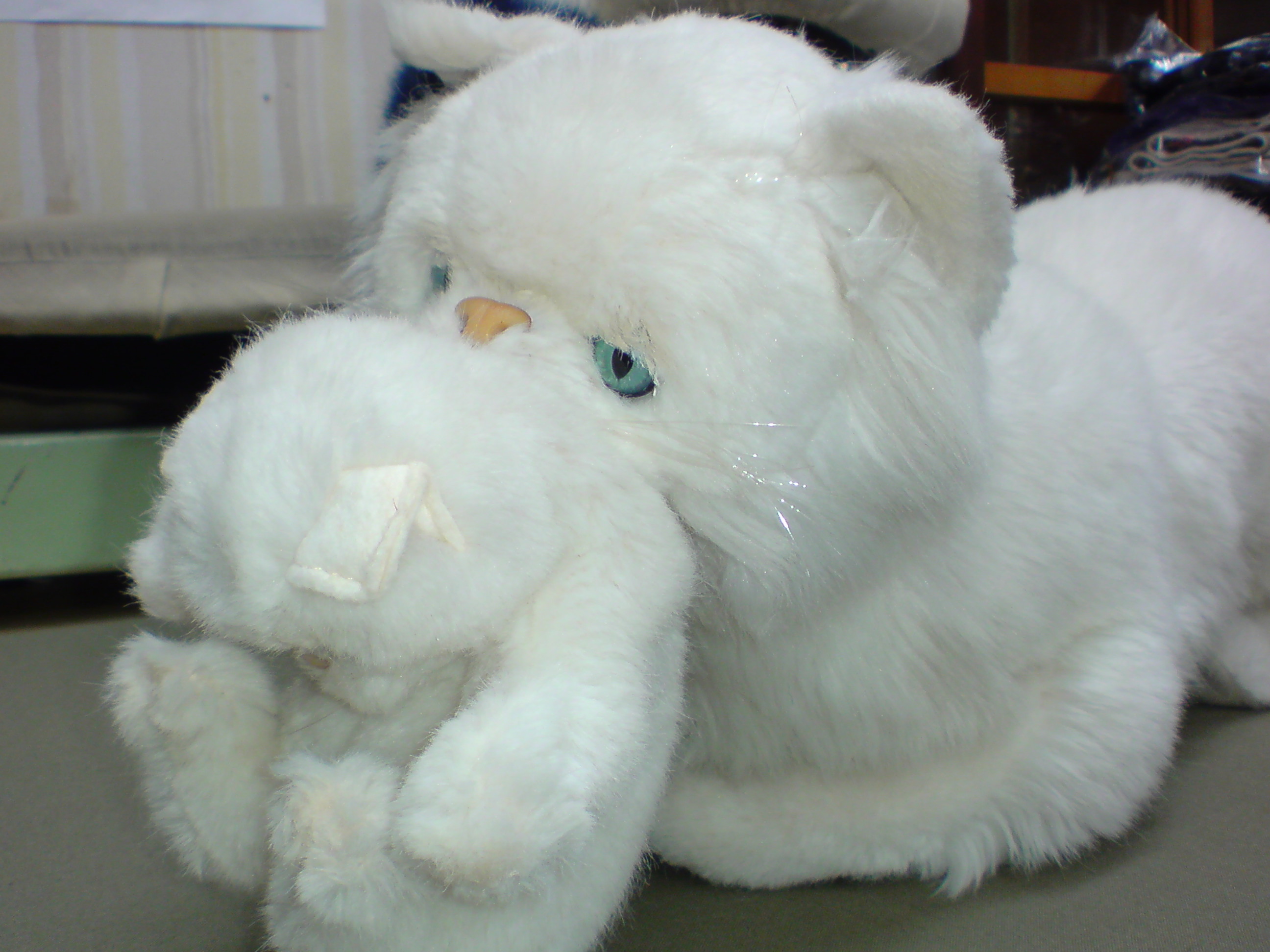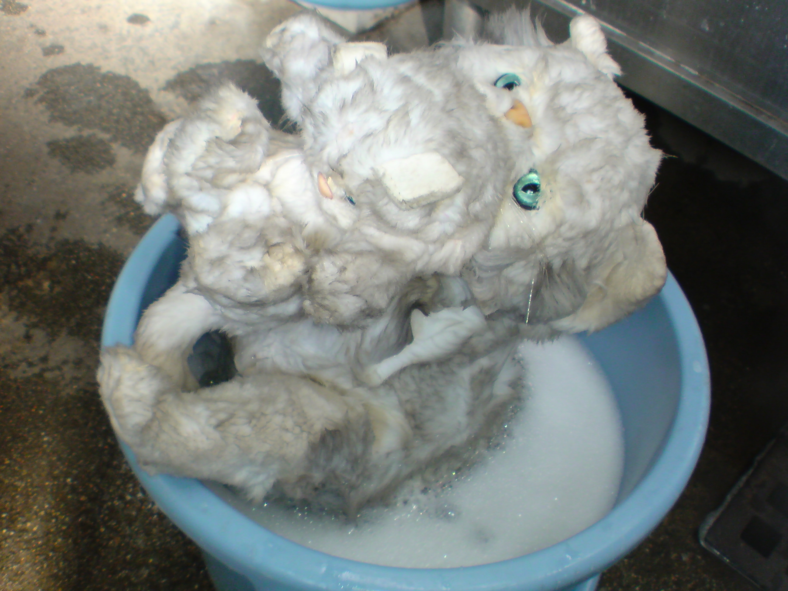 ぬいぐるみ 2010.02.03 06:22 今日は、節分です 皆様、豆まきはしましたでしょうか私は、豆まきはしてませんが恵方巻きは食べました。当店では『ぬいぐるみ』のクリーニングも承っております。写真は、バケツに浸けてしまったのでちょっと解りずらいかもしれませんが子猫をくわえた猫のぬいぐるみです。犬が、一週間ぐらい行方不明になって帰ってきた時のようにかなりの汚れです。 クリーニング後には、ほとんど真っ白の状態に戻りました。結構綺麗になりますので、お気に入りのぬいぐるみをたまには洗ってみては。