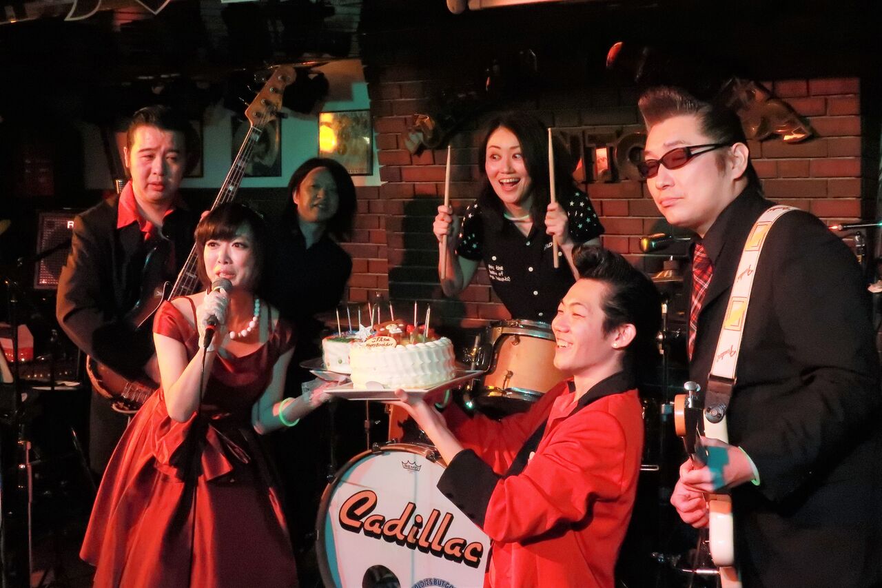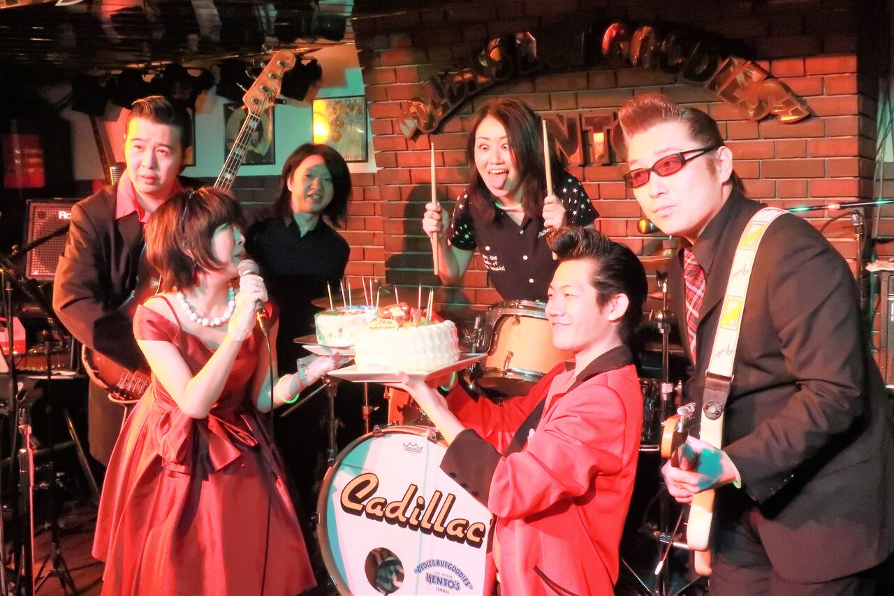 この日は12月生まれのBIG EELのバンマスのアナゴさんことビリーさんこと中村セイジさんと、変顔女王・ドラムのこづえさんのバースデー祝いがありました。